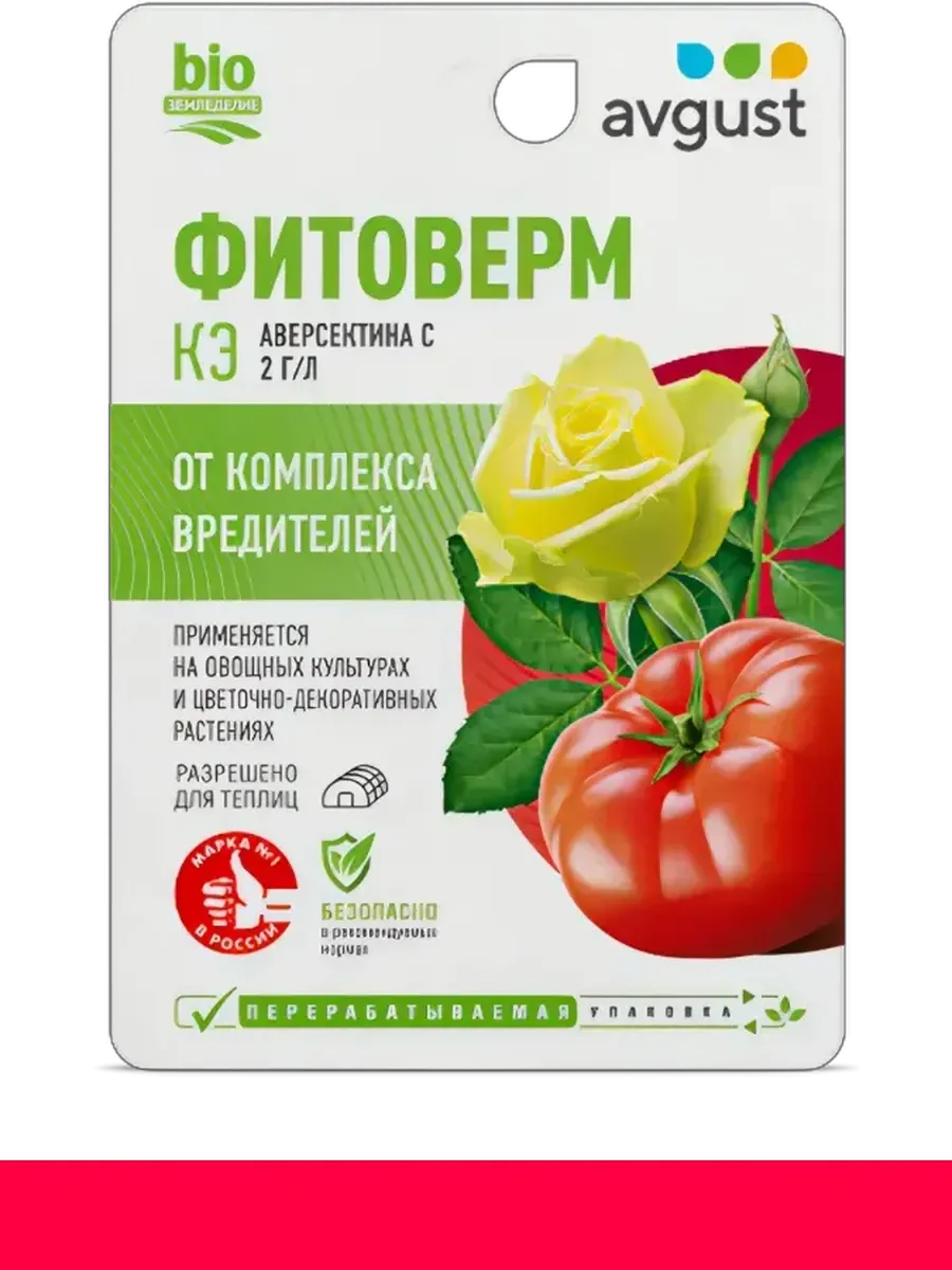 Фитоверм 10 мл Август ( Avgust ) - Биопрепарат для борьбы с комплексом вредителей на ягодных, плодовых культурах, овощах, цветах и декоративных растениях.