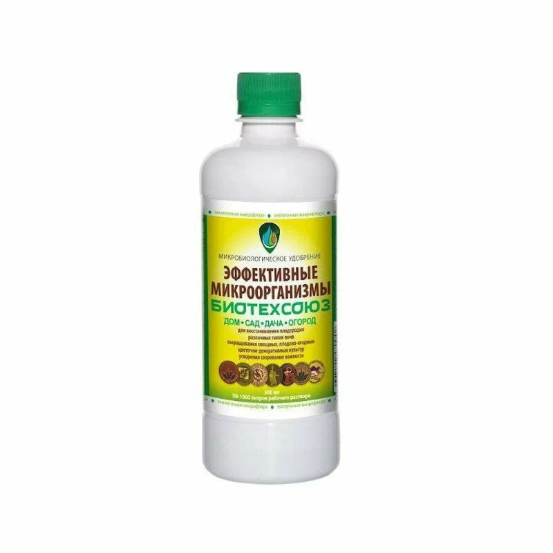 Биоудобрение, стимулятор "Биотехсоюз", для всех видов культур, 0,5 л. Состав: См. на упаковке.Биопрепарат "ЭФФЕКТИВНЫЕ МИКРООРГАНИЗМЫ БИОТЕХСОЮЗ" Усиливает способность растений к фотосинтезу Оказывает стимулирующее действие приводит к ускоренному развитию вегетативных органов, более раннему завязыванию и созреванию плодов Повышает устойчивость растений к фитопатогенам Ускоряет переработку органических веществ в почве Предупреждает уплотнение земли. Он положительно влияет на посадки, как в открытом грунте, так и для комнатных растений. После применения биопрепарата "ЭФФЕКТИВНЫЕ МИКРООРГАНИЗМЫ БИОТЕХСОЮЗ" ускоряется рост корней, наступление цветения, увеличивается объем завязи, удлиняется время плодоношения, повышается сопротивляемость растений к заболеваниям. Способы применения микробиологического удобрения "ЭФФЕКТИВНЫЕ МИКРООРГАНИЗМЫ БИОТЕХСОЮЗ" и нормы его расхода: Для обработки семян перед посевом разведите содержимое бутылочки 1:1000 и замочите семена на 30-60 минут. для подготовки почвы разведите содержимое бутылочки 1:1000 и тщательно пролейте почву из расчета 3 л рабочего раствора на 1 кв. м земли: за 7-10 дней до посадки весной или сразу после уборки урожая для опрыскивания по листу молодой рассады разведите "ЭФФЕКТИВНЫЕ МИКРООРГАНИЗМЫ БИОТЕХСОЮЗ" в соотношении 1:2000 и опрыскивайте листья каждые 7-10 дней для опрыскивания по листу и полива взрослых вегетирующих растений разведите ЭМ-препарат в соотношении 1:1000 и опрыскивайте или поливайте каждые 10-14 дней полезно обрабатывать растения, находящиеся в неблагоприятных условиях (переохлаждение, смена места, признаки заболеваний в чередовании с фунгицидами и т.д.), норма внесения 2-3 л на 1 кв. м земли для ускорения разложения органических остатков, разведите микробиологическое удобрение в соотношении 1:100 и поливайте компостную кучу из расчета 5 л на 1 кв. м