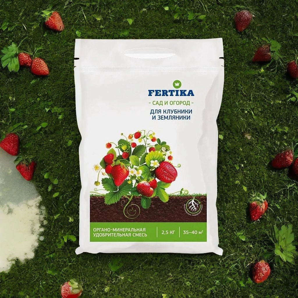 Удобрение Фертика органо-минеральное для клубники и земляники, 2,5 кг. Органо-минеральная удобрительная смесь для основного внесения и подкормки клубники и садовой земляники. Каждая гранула смеси содержит полный сбалансированный набор макро- и микроэлементов питания, необходимых для нормального роста и развития растений. Гуминовые вещества, входящие в состав смеси:• Повышают содержание гумуса в почве, восстанавливая ее плодородие. • Способствуют более полному усвоению растениями минерального питания. •Стимулируют иммунную систему растений, обеспечивая устоичивость к различным заболеваниямнеблагоприятным условиям.• Смягчают стрессы рассады при пересадке. Укрепляют корневую систему.• Связывают нитраты и тяжелые металлы в нерастворимые соединения, не допуская поступления их в растения • Способствуют повышению содержания сахаров и витаминов • Ускоряют созревание ягод и продлевают сроки сбора урожая.