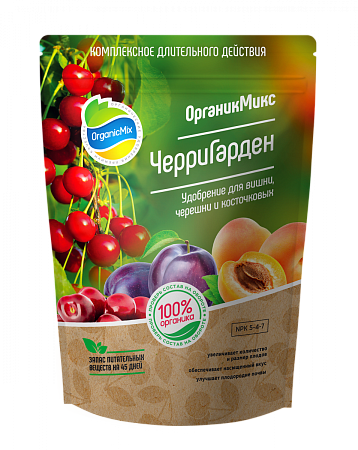 Удобрение Органик Микс для Косточковых Черри Гарден Черри Гарден это комплексное гранулированное удобрение пролонгированного действия, содержащее все необходимые макро- и микроэлементы в органической форме для богатого урожая и насыщенного вкуса плодов. Благодаря почвенным микроорганизмам, компоненты в грануле раскрываются постепенно и обеспечивают растения всем необходимым питанием. Преимущества: - 100% натуральный сбалансированный состав, подобранный с учетом биологической особенности культуры - увеличивают урожайность - ускоряют сроки созревания - увеличивают количество и размер плодов - обеспечивают насыщенный вкус - повышают количество витаминов в плодах - стимулируют рост и развитие, иммунитет, а также увеличивают сопротивляемость и устойчивость к болезням - снижает воздействие стресса от неблагоприятных условий и вредителей - обеспечивают красивый внешний вид и тонус - улучшают структуру и влагоемкость почвы - повышают плодородие почвы