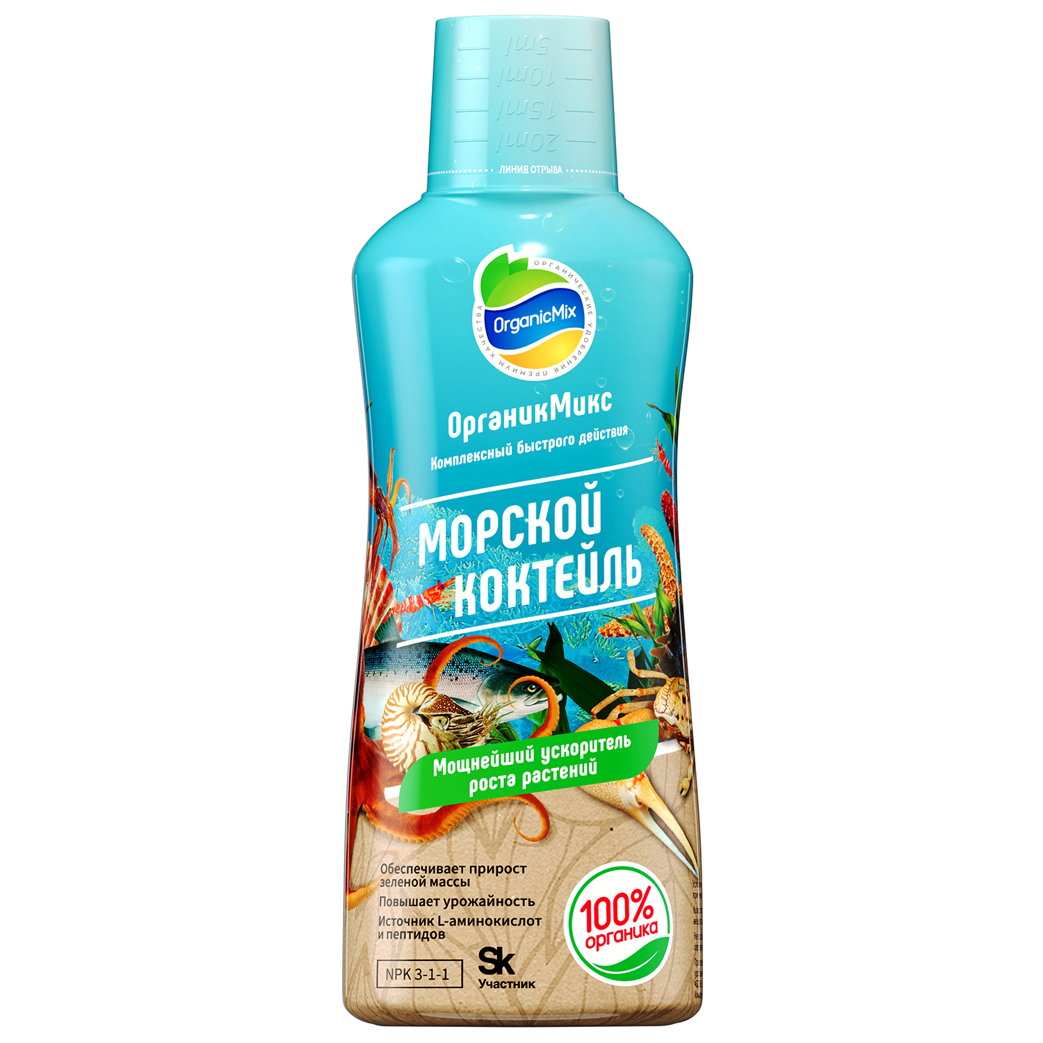 Морской коктейль - это уникальное решение для садоводов России. Подходит абсолютно всем культурам и не вызывает дисбаланс элементов при кормлении. Результат применения сравним с действием профессиональных стимуляторов. Благодаря белковой основе, он даже при высокой концентрации не обжигает корни. Морской коктейль настолько деликатен в своем действии, что может являться не только самостоятельным средством, но и усилит любую схему подкормки. Отлично сочетается с продуктами Органик Микс.