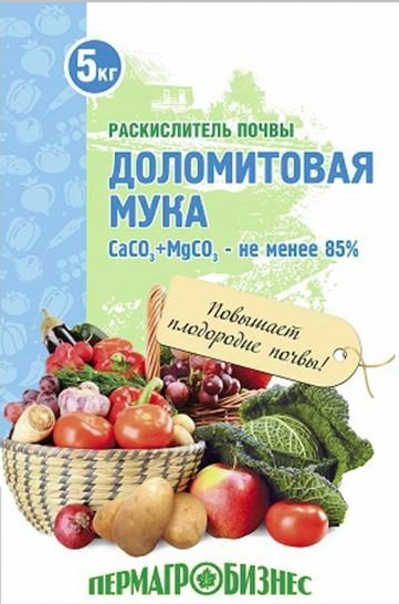 Доломитовая мука - известковое удобрение с суммарным содержанием кальция и магния 85%.