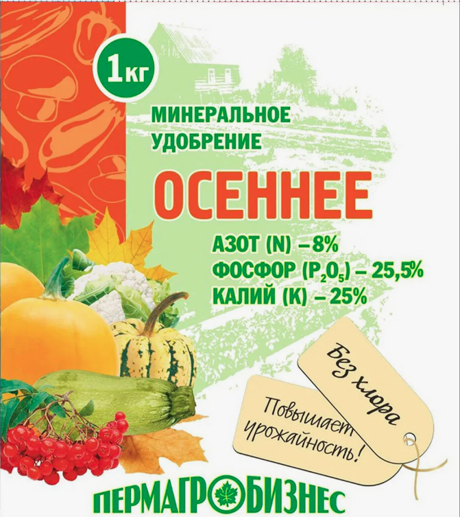 Высокоэффективное "Осеннее" комплексное удобрение с микроэлементами» специально разработано для применения на садовых, огородных и приусадебных участках в летне-осенний период. Используется для основного внесения под осеннюю перекопку и при осенней посадке луковичных культур, земляничной рассады, плодово-ягодных, а также хвойных деревьев и кустарников. Благодаря наличию комплекса микроэлементов и повышенному содержанию калия и фосфора повышает иммунитет и улучшает холодо- и морозостойкость растений.Микроэлементы усиливают процессы оплодотворения, плодообразования, усвоения питательных веществ, содействую тем самым лучшей урожайности, питательной ценности плодов и овощей (повышается содержание витаминов, крахмала и сахара).Микроэлементы и ферменты на их основе усиливают восстановительную активность тканей и препятствуют заболеванию растений.Микроэлементы являются одними из тех немногих веществ, которые повышают иммунитет растений.