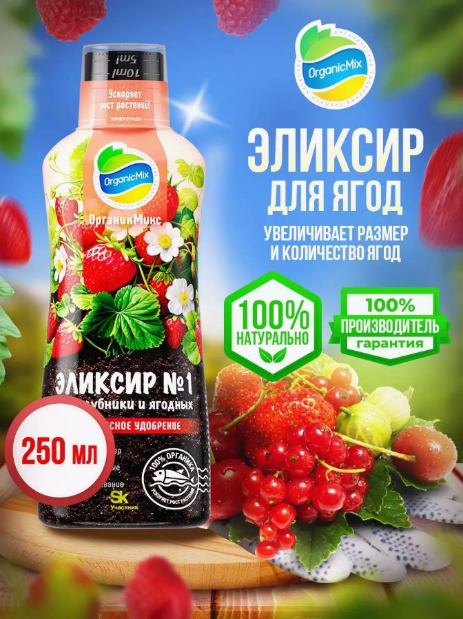 Удобрение Органик Микс Эликсир №1 для клубник и ягодных 250 мл.