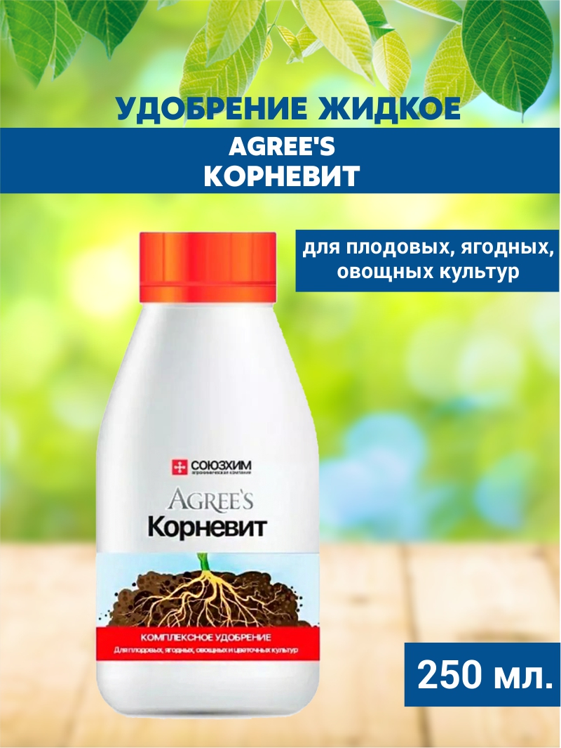 Удобрение Agree's Корневит жидкое органоминеральное - комплексное удобрение восполняющее дефицит кальция. Для правильного развития и роста крепкой корневой системы. Препятствует загниванию корней.