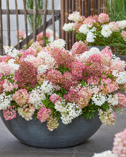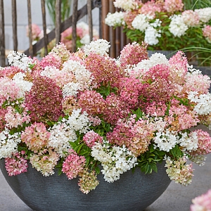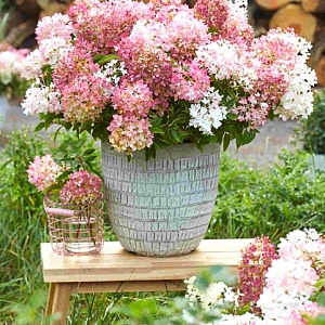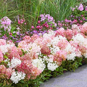 Этот сорт представляет собой уникальную почвопокровную форму метельчатой гортензии с исключительно компактными размерами. Он образует плотный зеленый ковер, который в период цветения полностью покрывается нежными кружевными соцветиями. Продолжительность цветения составляет до 100 дней. Листва с рельефным жилкованием добавляет растению декоративности.