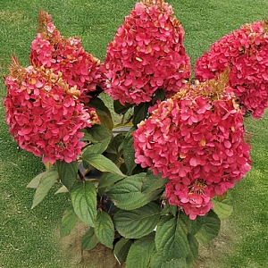 Особенность сорта – контрастная вершина соцветия. На протяжении всего цветения она остается белой, выделяясь на фоне нижних цветков и темно-бордовых побегов с фиолетовым оттенком. Конусообразные метелки до 30 см, с широким основанием и очень пышные, почти целиком состоят из стерильных цветков, тогда как фертильные сосредоточены в верхней части конуса. Куст вырастает до 1,5 м, иногда достигает 2,5 м, подвязки не требует. Не теряет декоративности осенью, так как сбрасывает листья очень поздно. Эта гортензия неприхотлива, прекрасно приспосабливается к полутени и способна зимовать даже под легким слоем снега.
