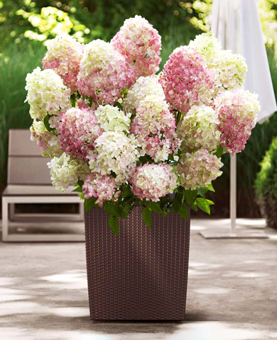 Эта изящная гортензия – настоящая принцесса среди своих сородичей. Она начинает цвести одна из первых. Цвет соцветий варьируется от белого и кремово-желтого до нежных тонов цветущего миндаля.