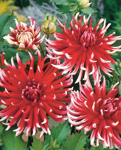 Экстравагантный сорт георгина с необычной игольчатой формой цветка. Узкие скрученные лепестки насыщенного пурпурного оттенка создают эффект взрыва фейерверка. Крупные махровые соцветия сохраняют идеальную форму даже в непогоду.