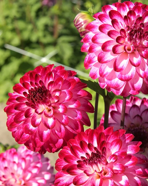Помпонный сорт георгина с изящными миниатюрными соцветиями насыщенного розово-малинового оттенка. Идеально сформированные шаровидные цветки состоят из плотно уложенных лепестков, образующих аккуратную сферу. Яркая окраска эффектно контрастирует с густой тёмно-зелёной листвой. Куст компактный, с прочными цветоносами, устойчивый к непогоде.