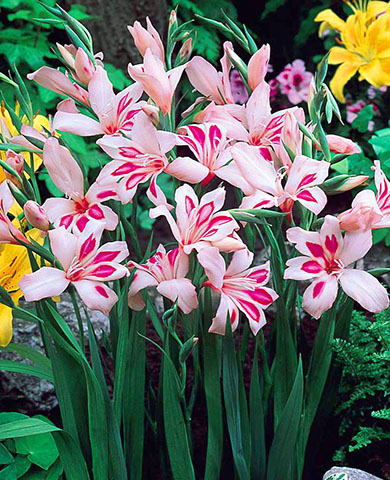 Совершенно изумительные гладиолусы самых изысканных форм и оттенков цветут во второй половине лета. У нас в России этот цветок пользуется бесконечной любовью всех без исключения садоводов и трудно обнаружить хотя бы один садовый участок, где бы не возвышался его стройный колос из множества сказочных цветков.