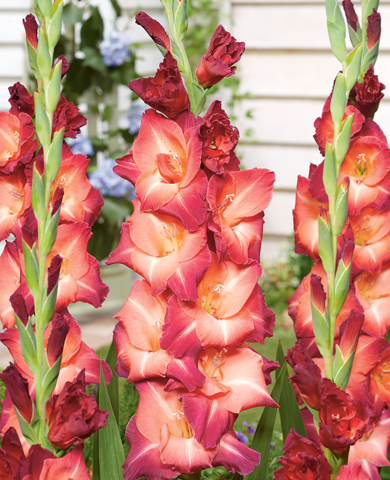 Гладиолус «Окаса» — изысканный сорт с благородной окраской. Бархатистые лепестки с тонкой каймой по краю создают эффект роскоши и таинственности. Крупные цветки с элегантной гофрировкой равномерно расположены на прочном цветоносе.