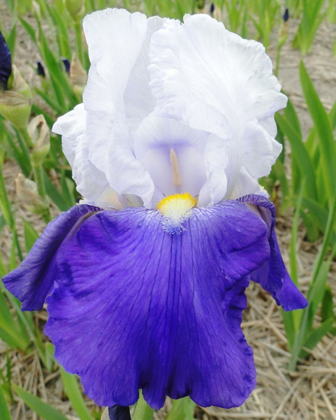 Ирис бородатый Арпеж — элегантный сорт с гармоничным сочетанием нежных оттенков. Цветок отличается изысканной двухтонной окраской: верхние лепестки (стандарты) — нежно-сиреневые с перламутровым переливом, а нижние (фолы) — насыщенного лавандово-пурпурного оттенка с бархатистой текстурой. Бородка контрастная, ярко-оранжевая, подчеркивает глубину основного тона.