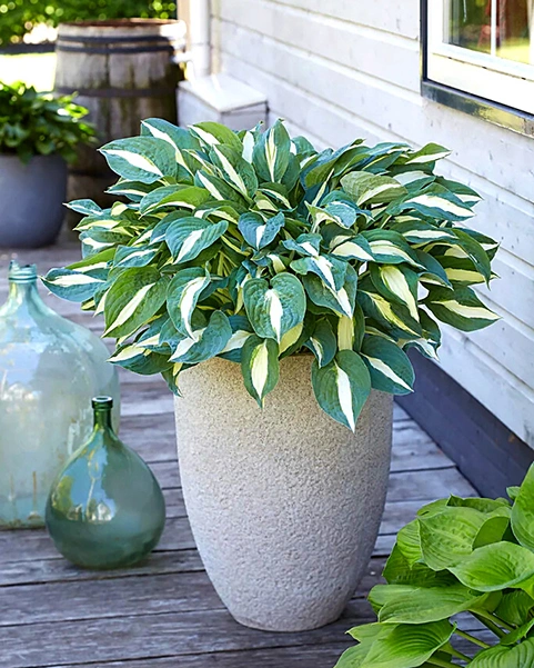 Контрастная и необычная, эта хоста выглядит особенно выразительно благодаря оригинальной расцветке листьев – светлая середина с желтовато-салатовыми оттенками окружена темно-зеленой каймой. Листья крупные, округлые, с четкой жилковатой структурой. Куст компактный, среднерослый. Цветки светло-лавандовые. Хорошо чувствует себя как в тени, так и при рассеянном солнечном свете.