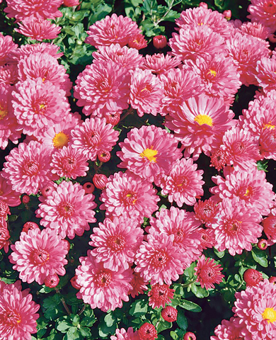 Прекрасная и утонченная Лелия украшена множеством сияющих розовых цветков размером 3–4 см в диаметре. Но самое примечательное – ее неистовое цветение с начала июня и до сентября, тогда как большинство хризантем расцветают лишь в августе. Растение неагрессивно и не разрастается слишком сильно. Оптимальные условия для посадки – сухое и солнечное место, защищенное от сквозняков. Полив по мере подсыхания почвы.