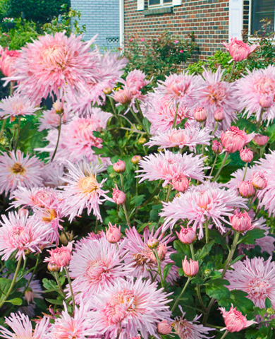 Эффектный крупноцветковый сорт с ажурными соцветиями, достигающими 10 см в диаметре! Нежно-розовые игольчатые лепестки с легким лиловым отливом смотрятся превосходно на фоне густой темно-зеленой листвы. Особое очарование им придает кремово-желтая серединка. Кусты воздушные, разрастаются быстро. Цветет обильно и продолжительно с середины лета и до первых морозов. Отлично зимует в открытом грунте.