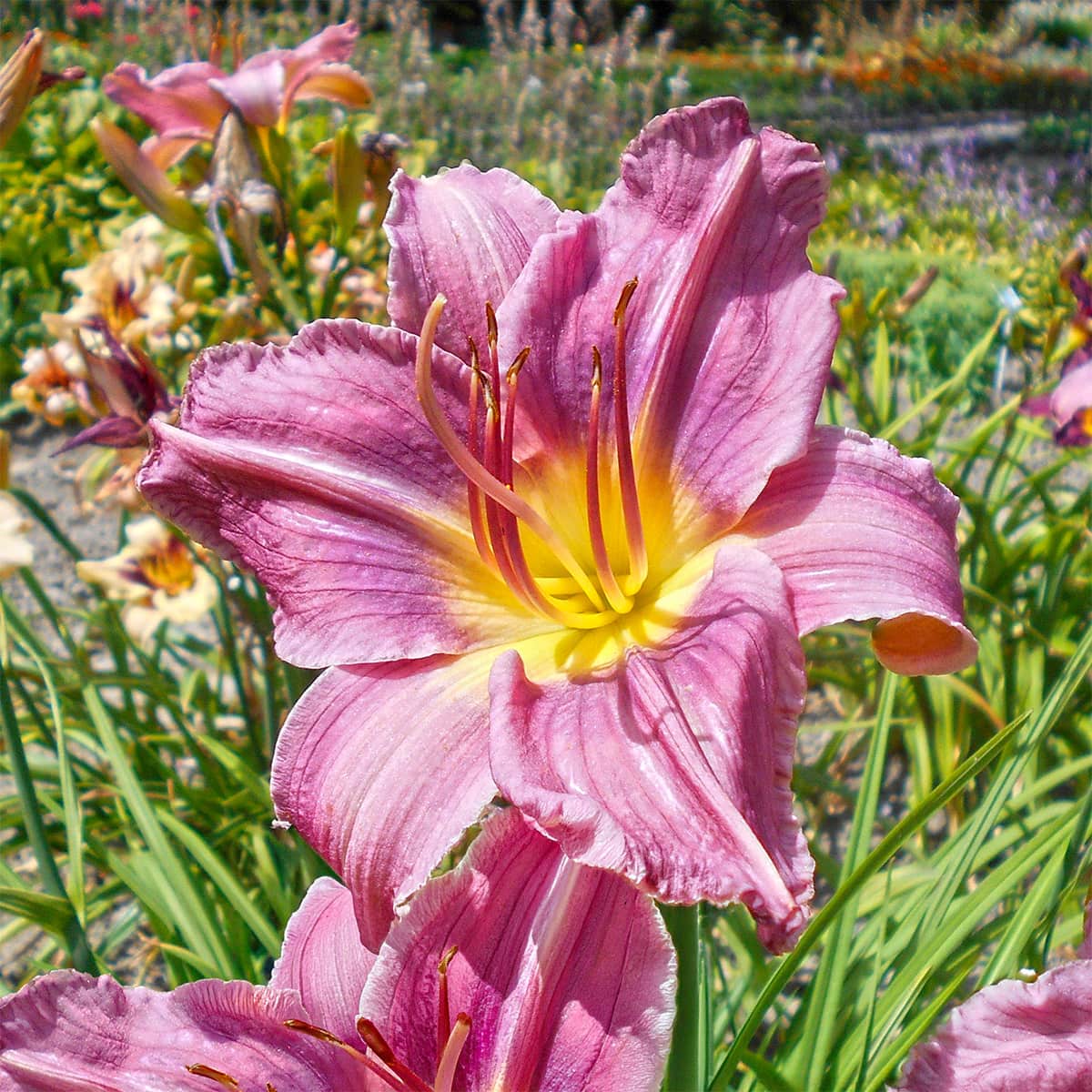 Лилейник, или красоднев, один из самых популярных многолетников. Высокие декоративные качества удачно сочетаются с неприхотливостью и простотой выращивания. К почве нетребователен, легко переносит полутень, устойчив к недостатку увлажнения, прекрасно зимует без укрытия. ↑60-75 см/VII-VIII/ диаметр до 15 см