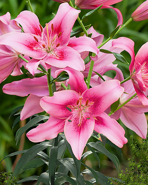 Агротехника выращивания лилий: посадка, уход и размножение Успешное выращивание лилий основывается на соблюдении правил посадки, ухода и размножения. Поскольку разные виды и сорта имеют свои особенности, их агротехника может существенно различаться. Посадка лилий Выбор места: Участок должен быть солнечным, защищенным от сильных ветров, предпочтительно на возвышенности. Лилии категорически не выносят застоя воды. При посадке в низине необходимо обустраивать приподнятые грядки или клумбы высотой 20-30 см. Почва: Грунт требуется рыхлый, плодородный и с хорошим дренажем. Для трубчатых гибридов и лилии «Кандидум» подходит слабощелочная или нейтральная почва. Азиатские, восточные, ЛА- и ОТ-гибриды предпочитают рыхлую, влагоемкую землю со слабокислой реакцией. Расстояние: Между луковицами высокорослых сортов оставляют 30-40 см. Для азиатских, восточных и ЛА-гибридов достаточно расстояния в 20-25 см. Глубина посадки: Низкорослые лилии высаживают на глубину 8-12 см, среднерослые — 12-16 см, а высокорослые — 17-22 см. Завершение посадки: После высадки грядку рекомендуется замульчировать торфом, перегноем или растительными остатками. Уход за лилиями Полив: Почва должна оставаться постоянно влажной и рыхлой, но не переувлажненной. Стандартный режим полива — раз в 3-4 дня, который учащается в засушливую погоду. Воду направляют под корень, избегая попадания на луковицы. Подкормка: Рекомендуется трехэтапная схема внесения удобрений: весной применяют азотные для наращивания зеленой массы, до цветения (в фазе бутонизации) — органические, а после цветения, в конце лета, — минеральные комплексы. Обрезка: После увядания цветов удаляют только семенные коробочки. Стебли оставляют до осени, и лишь когда они пожелтеют, срезают на высоте до 15 см от земли. Пересадка: Лилии нуждаются в пересадке каждые 3-5 лет. Быстрорастущие сорта следует делить и пересаживать чаще — раз в 2-3 года. Размножение лилий Дочерними луковицами: В конце лета, после цветения, куст аккуратно выкапывают и отделяют дочерние луковички (детки). Крупные экземпляры высаживают на постоянное место, а мелкие — на отдельную грядку для доращивания. Стоит учесть, что не все виды лилий образуют деток. Чешуйками: Со взрослой луковицы аккуратно отделяют часть внешних чешуек (не более трети). Их помещают в пакет с влажными опилками, мхом или песком и хранят в темноте до образования маленьких луковок. После этого молодые растения доращивают в домашних условиях или на специальной грядке.