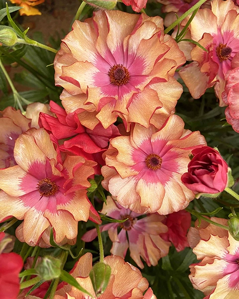 Лютик Баттерфляй Муза — махровый сорт азиатского лютика (ранункулюса), отличающийся нежными лепестками с градиентной окраской. Цветы напоминают миниатюрные пионы или розы, а их окраска сочетает кремово-белые и нежно-розовые оттенки, создавая эффект акварельного перехода. Сорт идеально подходит для срезки, контейнерного выращивания и оформления клумб.
