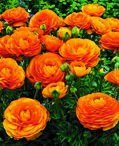 Невысокие растения с крупными махровыми цветками, напоминающими пионы, диаметром 8–10 см. Растут на крепких коротких стеблях с обилием яркой зелени из резных привлекательных листьев. Бутоны распускаются неторопливо, как будто позволяя нам насладиться этим завораживающим зрелищем. В прекрасных летних букетах лютики могут стоять до 2двух-х недель.