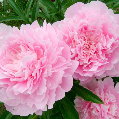 Великолепный травянистый пион, получивший свое название за гигантские цветки, достигающие размера обеденной тарелки. Этот сорт поражает воображение своими огромными, часто махровыми или полумахровыми соцветиями нежно-розового цвета с перламутровыми переливами лепестков. Мощные цветоносы уверенно держат эти тяжёлые шапки цветов, не требуя опоры. Растение образует раскидистый, пышный куст с декоративной резной листвой, которая осенью приобретает багряные оттенки.