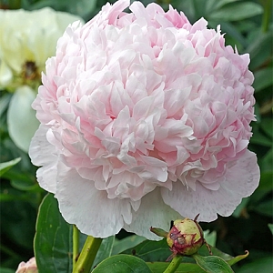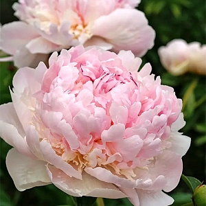 Травянистый пион с изящными цветами нежно-розового оттенка, украшенными перламутровым переливом. Лепестки расположены в несколько рядов, формируя элегантный полусферический бутон. Сорт отличается выносливостью и устойчивостью к неблагоприятным погодным условиям.