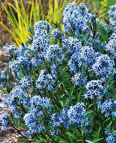 Амсония (Blue Star): посадка, уход и размножение Амсония — неприхотливое многолетнее растение, но для пышного цветения и сохранения декоративности важно соблюдать основные правила агротехники. Посадка Место: солнечный участок или лёгкая полутень. На солнце кусты более компактные, в тени — раскидистые (может потребоваться подвязка). Почва: лёгкая, дренированная, с нейтральной или слабокислой реакцией. Тяжёлые грунты разрыхляют песком или гравием, в бедные почвы вносят компост. Схема посадки: расстояние между растениями — 30–50 см (3–6 кустов на 1 м²). Технология посадки: перед высадкой замочить корни на 1–2 часа. Яма — 30–40 см, с дренажем (керамзит, гравий) и смесью садовой земли, песка и компоста. После посадки уплотнить грунт и обильно полить. Уход Полив: умеренный, без застоя воды. В засуху — 1–2 раза в неделю. Подкормки: 1–2 раза за сезон (весна, начало лета) комплексными удобрениями или мульчирование компостом. Обрезка: удаление увядших соцветий продлевает цветение. Весной обрезают старые побеги для лучшей зимовки. Зимовка: осенью стебли укорачивают до 20–30 см, мульчируют торфом или компостом (5–10 см). В морозных регионах укрывают лутрасилом. Размножение Семенами: собирают в сентябре, высевают под укрытие (лутрасил). Всходы развиваются медленно, к осени готовы к пересадке. Делением куста: проводят весной или осенью. Каждая делёнка должна иметь 3 почки, корневую шейку оставляют над землёй.