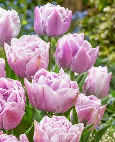 Распускается в конце весны, когда особенно хочется продлить сезон цветения тюльпанов. Его пышные, многослойные цветки диаметром до 12 см напоминают пионы – плотные, розово-сиреневые, с нежным перламутровым переливом. Сорт хорошо держит форму в срезке и долго сохраняет декоративность.