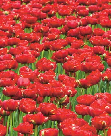 Роскошный сорт с крупными белоснежными соцветиями, по форме напоминающими пионы. Лепестки многослойные, воздушные, словно взбитые сливки. Особенно эффектен в массовых посадках. Позднее цветение делает его идеальным завершением тюльпанового сезона.