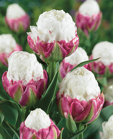 Невозможно устоять перед этим эффектным сортом. По мере раскрытия нижние лепестки окрашиваются в насыщенно-розовый, а сверху появляется пышное бело-кремовое облако – словно сливки на клубничном мороженом. Кустик компактный, а соцветие – настоящее украшение позднего весеннего цветника.