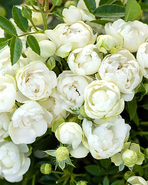 Полиантовая молочно-белая роза с цветками правильной шаровидной формы, похожей на нераспустившиеся бутоны пиона. Цветки 4–-5 см в диаметре, собраны в крупные соцветия по 5–-10 штук. Куст с мелкой, темно-зеленой, глянцевой листвой. Цветение обильное, повторное, аромат легкий. Сорт хорош и для контейнерной культуры. Высокоустойчив к мучнистой росе и черной пятнистости. Зимостойкость до −–25 °С.