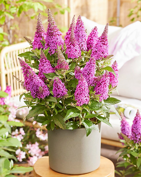 Компактный и изысканный кустарник, идеально подходящий для небольших садов и контейнерного выращивания. Эта миниатюрная красавица образует аккуратный куст, обильно усыпанный густыми соцветиями насыщенного вишнево-розового цвета с красноватым оттенком. Остроконечные метёлки источают нежный медовый аромат, привлекающий множество бабочек и пчел. Продолжительное цветение делает её настоящей звездой сада с середины лета до осени.