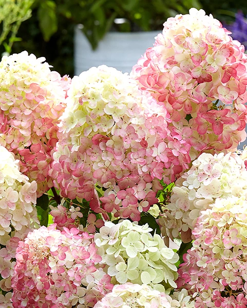 Феноменально красивое цветение, отмеченное победами на международных выставках! Сорт выделяется необычным изменением цвета: едва раскрывшись, чашелистики, напоминающие лепестки, сверкают белизной, но вскоре начинают менять окраску, сначала становясь розовыми, а затем приобретая насыщенный малиновый оттенок. Тон может изменяться в зависимости от кислотности почвы. Соцветия плотные, крупные, в форме метелок длиной до 35 см, появляются на