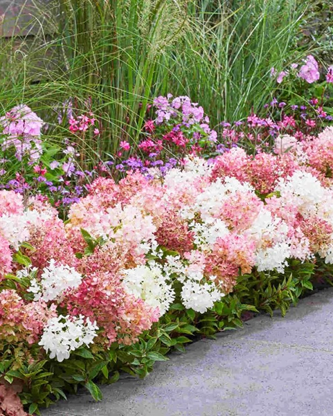 Этот сорт представляет собой уникальную почвопокровную форму метельчатой гортензии с исключительно компактными размерами. Он образует плотный зеленый ковер, который в период цветения полностью покрывается нежными кружевными соцветиями. Продолжительность цветения составляет до 100 дней. Листва с рельефным жилкованием добавляет растению декоративности.