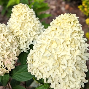 Очень необычная гортензия, украшенная множеством изумительных соцветий длиной до 30 см! Этот сорт не похож ни на один другой метельчатый сорт. Экзотичность ему придают гиацинтовидные цветки с загнутыми кончиками вытянутых лепестков. Объемные шапки соцветий от этого выглядят особенно великолепно. Вначале лепестки чисто белые или слегка зеленоватые, но со временем приобретают нежный сливочно-розовый оттенок. Побеги крепкие, вертикально растущие. Зимостойкость −35 °С.