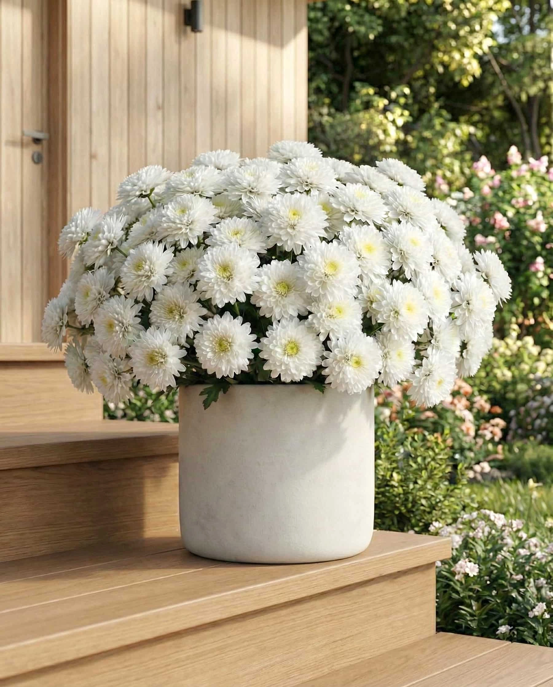 Ранняя белая хризантема исключительной красоты и выносливости.