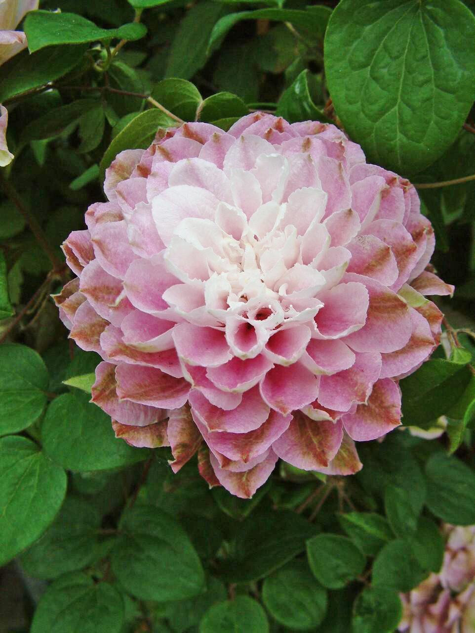 Этот сорт поражает своими пышными, похожими на георгины соцветиями нежного пастельно-розового оттенка, которые обрамляет белоснежная сердцевина. Растение мощное, с обильным цветением (бутоны до 9 см в диаметре). Молодые листья весной имеют эффектный пурпурный окрас. Сорт отлично чувствует себя в горшечной культуре и отличается хорошей зимостойкостью.