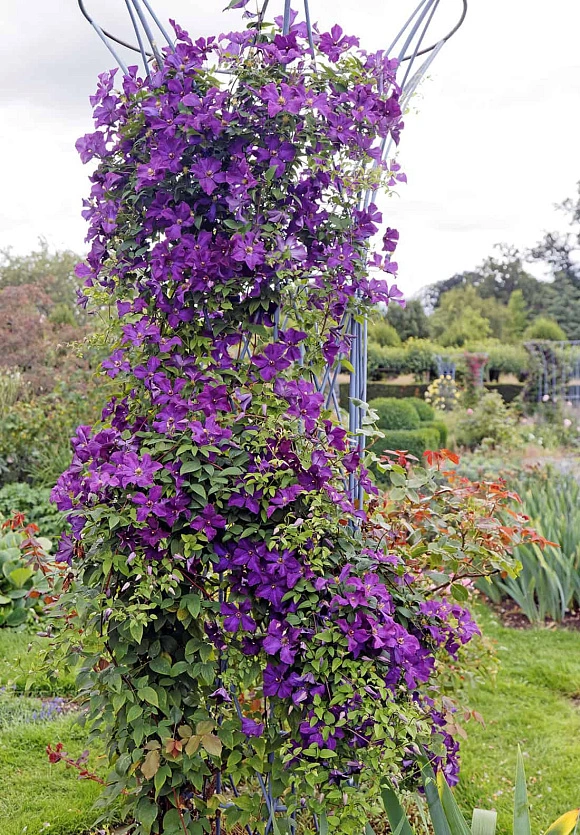 - Клематис нуждается в опоре для роста. Это могут быть решетки, арки, перголы или другие конструкции, по которым растение сможет виться.