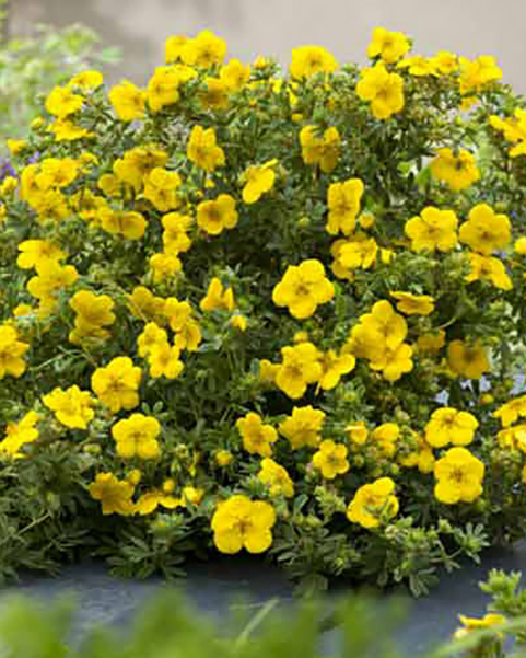 Солнечный и яркий сорт, который подарит вашему саду обильное золотисто-желтое цветение. Эта лапчатка отличается насыщенными желтыми цветами с бархатистым оттенком, которые эффектно контрастируют с серебристо-зеленой ажурной листвой. Компактный, хорошо разветвленный куст сохраняет аккуратную подушковидную форму на протяжении всего сезона. Идеальный выбор для создания ярких акцентов в бордюрах, рокариях и контейнерных посадках.