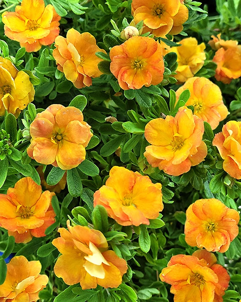 Яркий и энергичный сорт, который буквально «зажигает» сад своими крупными махровыми цветами насыщенного красно-оранжевого оттенка. Эта лапчатка отличается не только эффектным, продолжительным цветением, но и исключительной выносликостью. Компактный, плотный куст сохраняет аккуратную форму без особого ухода, делая его идеальным для создания цветовых пятен в бордюрах, рокариях и контейнерах.