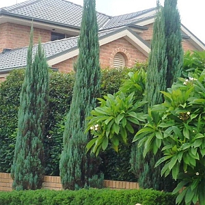 Узкоколонновидная хвойная «ракета» с вертикальными ветвями и густыми прилегающими побегами, устремленными вверх. Годовой прирост в высоту 20 см, в ширину 5 см. Хвоя чешуйчатая, красивого серовато-голубого цвета. Сорт нетребовательный, засухоустойчивый с очень мощной корневой системой. Дерево станет эффектным акцентом в саду, хорошо вписывается в хвойные композиции и может использоваться в качестве живой изгороди. Зимостойкость до −35 °С.