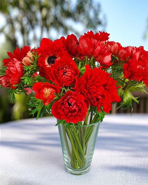 Эффектный и страстный сорт, который станет ярким акцентом вашего весеннего сада. Эта анемона поражает крупными махровыми цветами насыщенного красного цвета с бархатистым оттенком. Пышные, похожие на пионы соцветия эффектно контрастируют с ажурной темно-зеленой листвой. Идеальный выбор для создания выразительных композиций, цветовых акцентов и роскошных весенних букетов.
