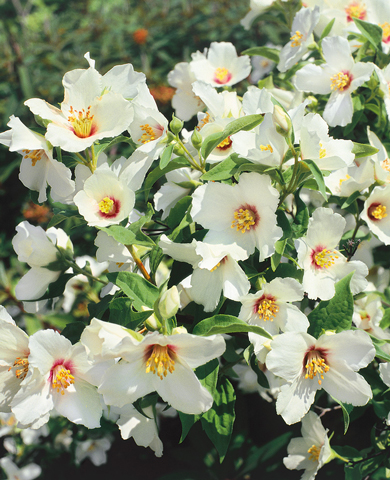 В лепестках этих белоснежных колокольчиков словно спрятан теплый розовый отблеск, чуть заметный у основания – как тайна, раскрывающаяся только вблизи. Насыщенный аромат со сладкими земляничными и фруктовыми нотками добавляет очарования. Со временем листва приобретает лимонный оттенок, добавляя яркости в зеленую гамму сада. Цветение очень обильное, куст невысокий, аккуратный. Выдерживает морозы до −27 °C, при повреждении легко восстанавливается весной.