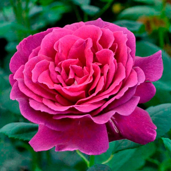 Один из самых роскошных и выразительных сортов в фиолетовой гамме. Огромные густомахровые цветки особенно эффектны вблизи, где хорошо видна сложная игра пурпурных, малиновых и красновато-фиолетовых оттенков. Аромат сильный, пряный, с нотками гвоздики и мускуса. Куст прямостоячий, аккуратный, с темной глянцевой листвой. Зимостойкость до –25 °C.