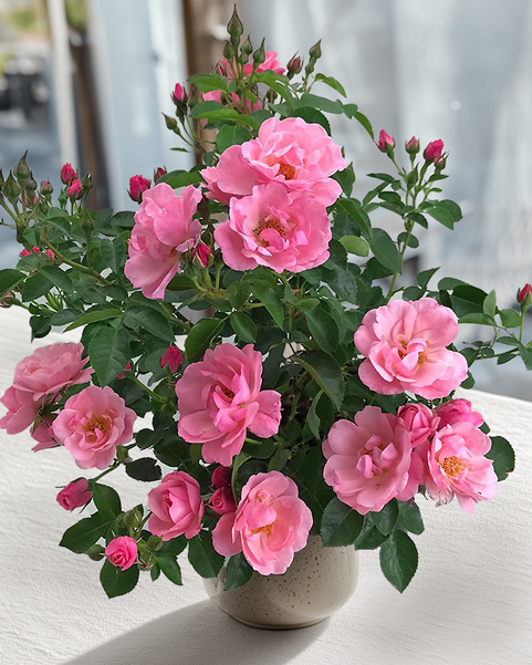 Серия классических чайно-гибридных компактных роз с заостренными одиночными цветками 10–-12 см в диаметре, которые очень долго держатся на кустах. Кусты вертикальные, хорошо облиственные. Легко ветвятся естественным образом. Цветут равномерно и обильно. Высокоустойчивы к заболеваниям и вредителям. Для выращивания в контейнере оптимальный объем 2–-3 л. Зимостойкость высокая.