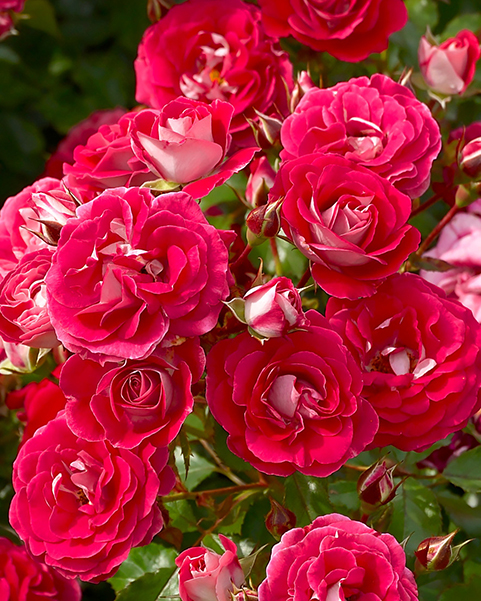 Молодой карликовый сорт. Завораживает своими яркими многолепестковыми бутонами, играющими красным и серебристым цветами. Диаметр цветков 4–-5 см. Аромат легкий. Куст прямостоячий и густой. Цветет повторно в течение сезона. Зимостойкость до −–25 °С.