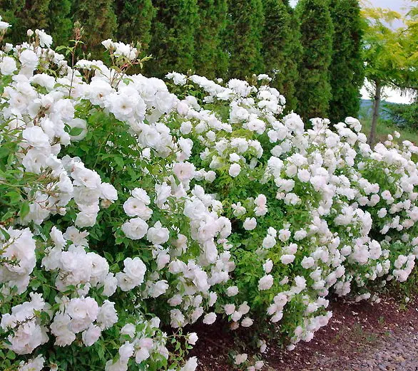 Низкорослая белая стелющаяся роза с махровыми цветками в форме чашечек диаметром до 4 см, собранными в воздушные кисти. Цветет обильно и долго. Листва мелкая, глянцевая, ярко-зеленая. Куст растет в ширину охотнее, чем в высоту, может использоваться как почвопокровник, также хорош для бордюров и миксбордеров.