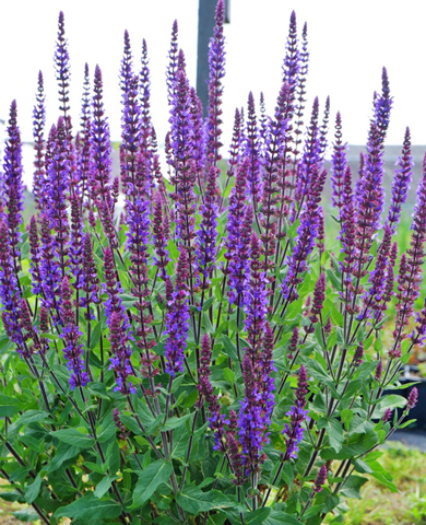 Один из самых ярких сортов. Выделяется в любых ландшафтных условиях пурпурно-фиолетовыми ароматными соцветиями на красивых вертикальных побегах чернильного цвета. Куст стройный, высокий, с темно-зелеными листьями, разрастается в объеме до 70 см. Используют его и для групповых композиций в цветниках, и для одиночных посадок. Не бойтесь обрезать растение после первой волны цветения, оставив всего 15‒20 см от земли. Очень быстро появятся новые цветущие побеги. Неприхотлив в уходе, стойко переносит засуху. Достаточно одной комплексной подкормки за сезон, чтобы декоративность шалфея сохранилась до самой осени. Зимостойкий, не требует укрытия на зиму.