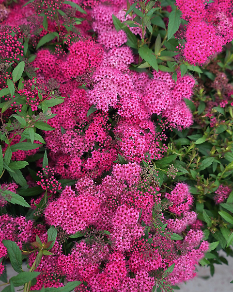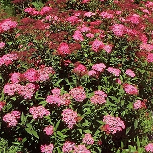 Ярко и обильно цветущий акцентный сорт спиреи. Прямостоящие побеги образуют крону правильной формы, до 1 м в диаметре. При распускании листья темно-зеленые с красноватым оттенком, а к осени приобретают уверенный красный цвет. Плотные темно-амарантовые соцветия не бледнеют на протяжении всего периода цветения. Цветет почти все лето, может повторно зацвести и осенью. Растение неприхотливо в уходе, зимостойкость до −35 °С.