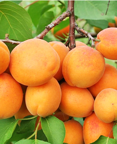 Уже на второй год после посадки вы сможете наслаждаться крупными абрикосами весом 80–100 г с мармеладным вкусом, в котором отчетливо ощущаются нотки ананаса. Мякоть сочная и нежная, буквально тает во рту. Плоды удлиненной формы, ярко-оранжевого цвета с красными точками, которые могут покрывать до трети поверхности. Урожай созревает в августе. Сорт универсален: абрикосы вкусны как в свежем виде, так и в кулинарных заготовках. Благодаря небольшой косточке отходы минимальны. Плодоношение может продолжаться до 40 лет. Зимостойкость до −30 °C.